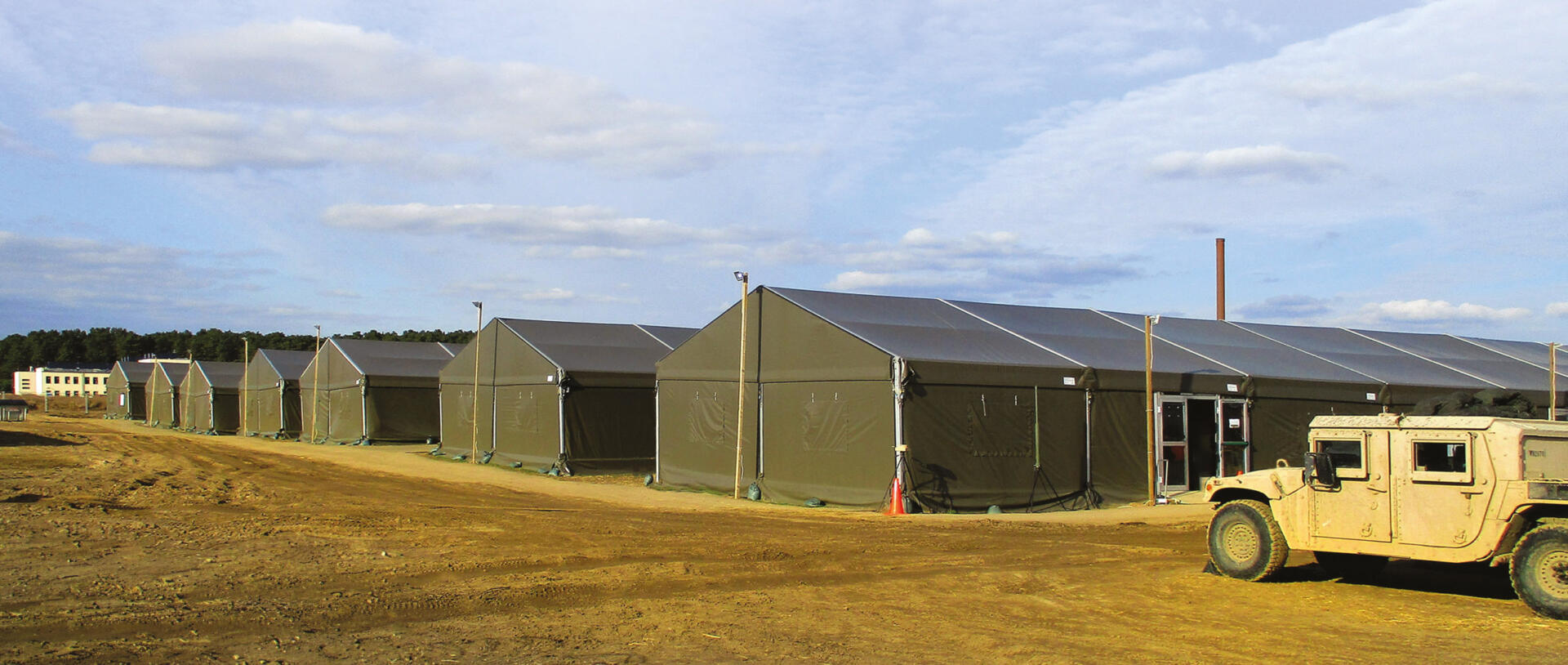 Wykorzystuje połączenie lekkich, aluminiowych ram, słupów i płatwi ze stalowymi stopami, zastrzałami, linami i łącznikami. Sprawdzi się zarówno jako obiekt mieszkalny, konferencyjny czy sanitarny, jak i jako przestrzeń do napraw sprzętu wojskowego w systemie tunelowym.
