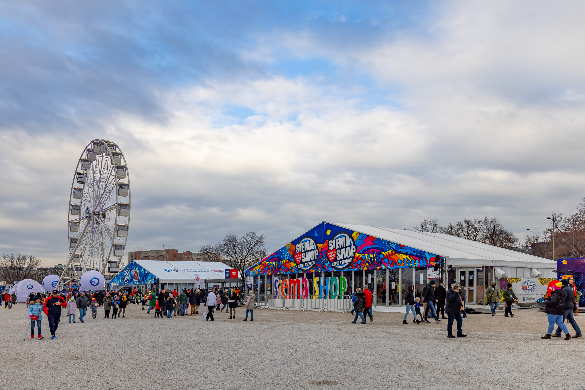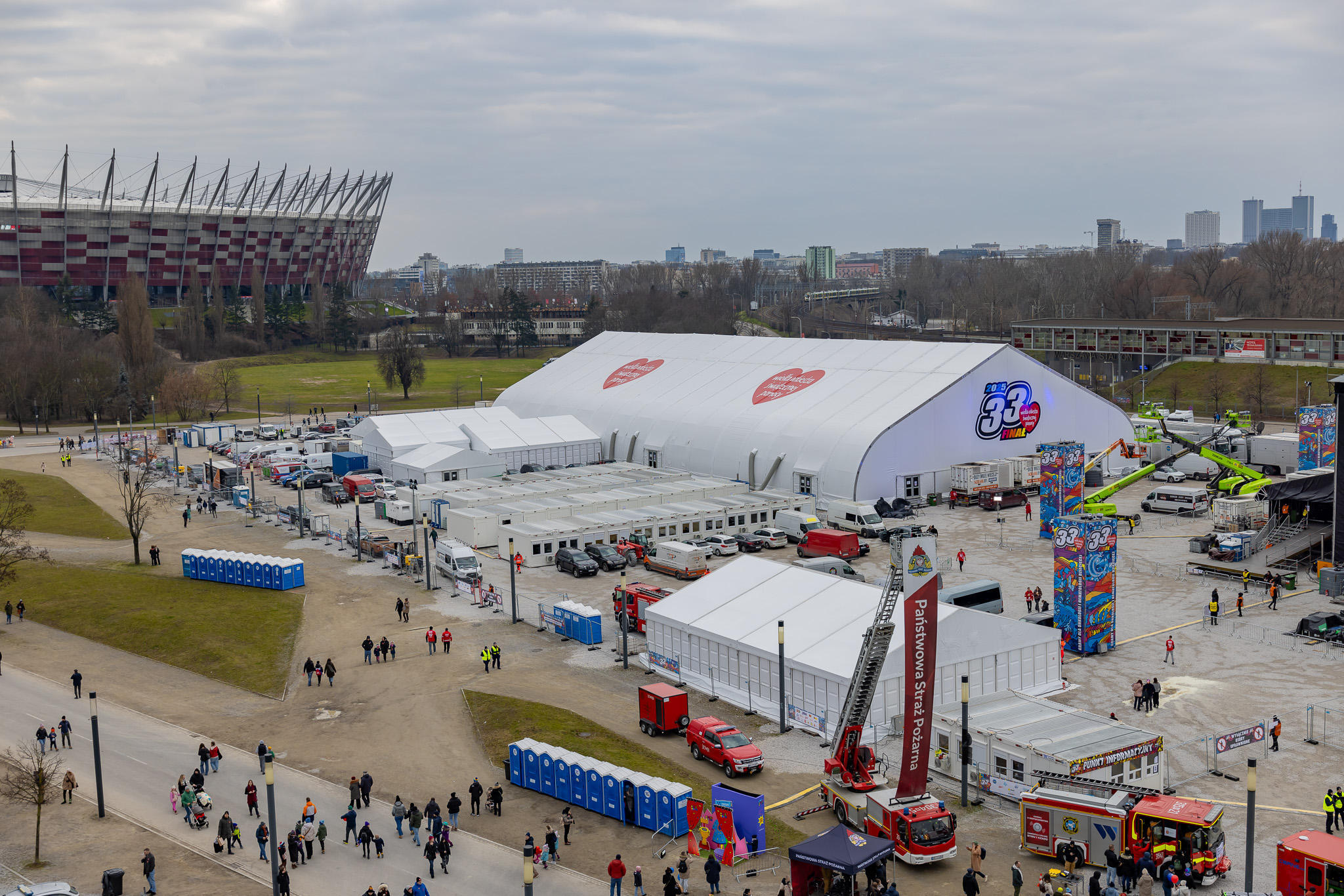 Hale namiotowe dostarczane przez REKORD sprawdzają się w zaawansowanej logistyce organizacji corocznych Finałów Wielkiej Orkiestry Świątecznej Pomocy w Warszawie na błoniach PGE Narodowego.